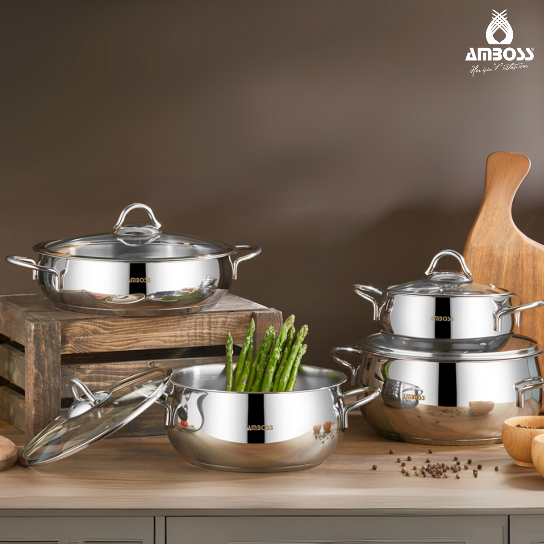 L’ensemble de 8 pièces Amboss Stone, avec son design élégant, sa construction robuste et sa large gamme de produits, vous accompagnera dans votre cuisine pendant de nombreuses années. Adapté aux cuisines professionnelles comme aux particuliers, cet ensemble transformera la cuisine en un véritable plaisir.