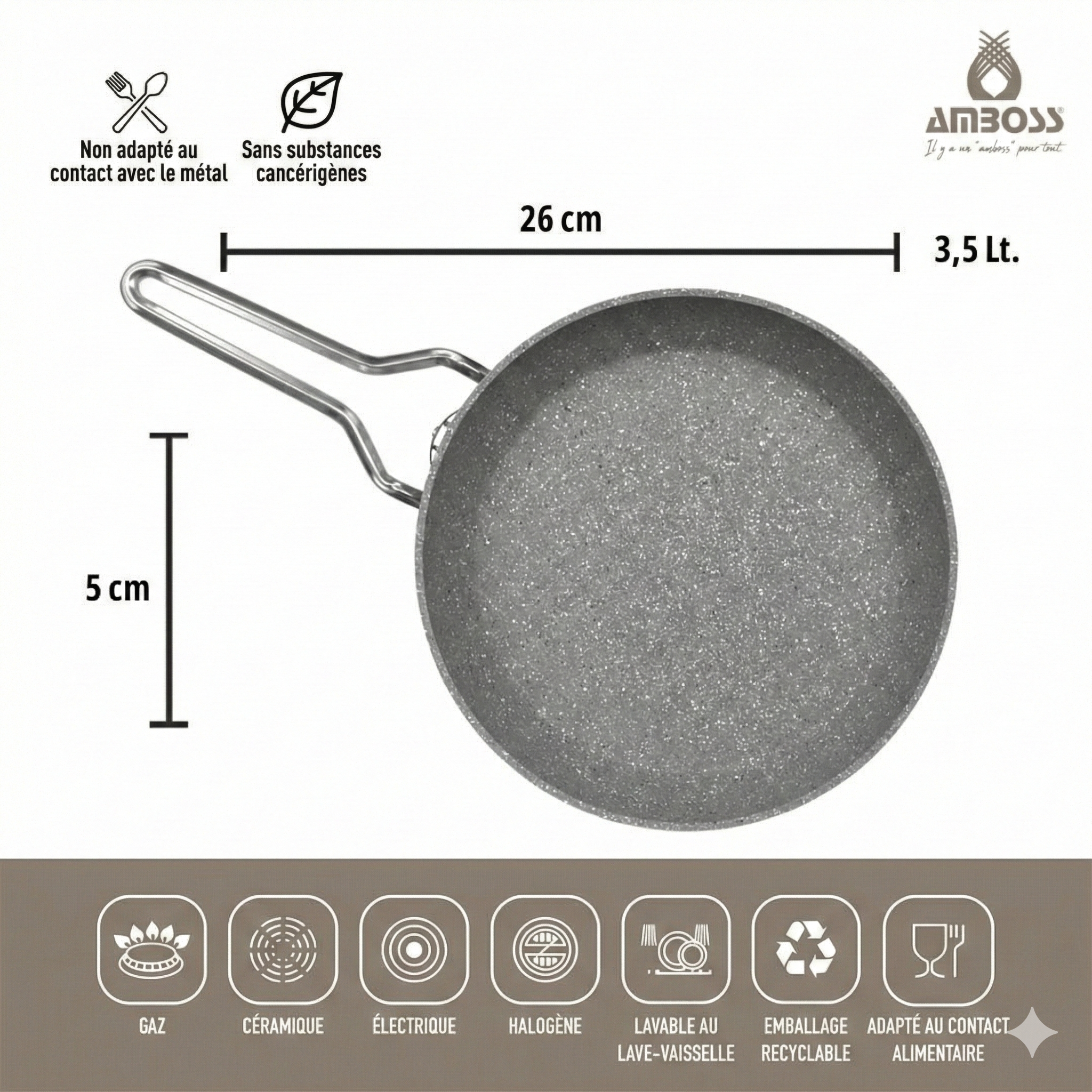 Casserole peu profonde de 26 cm : Idéale pour faire sauter et frire.