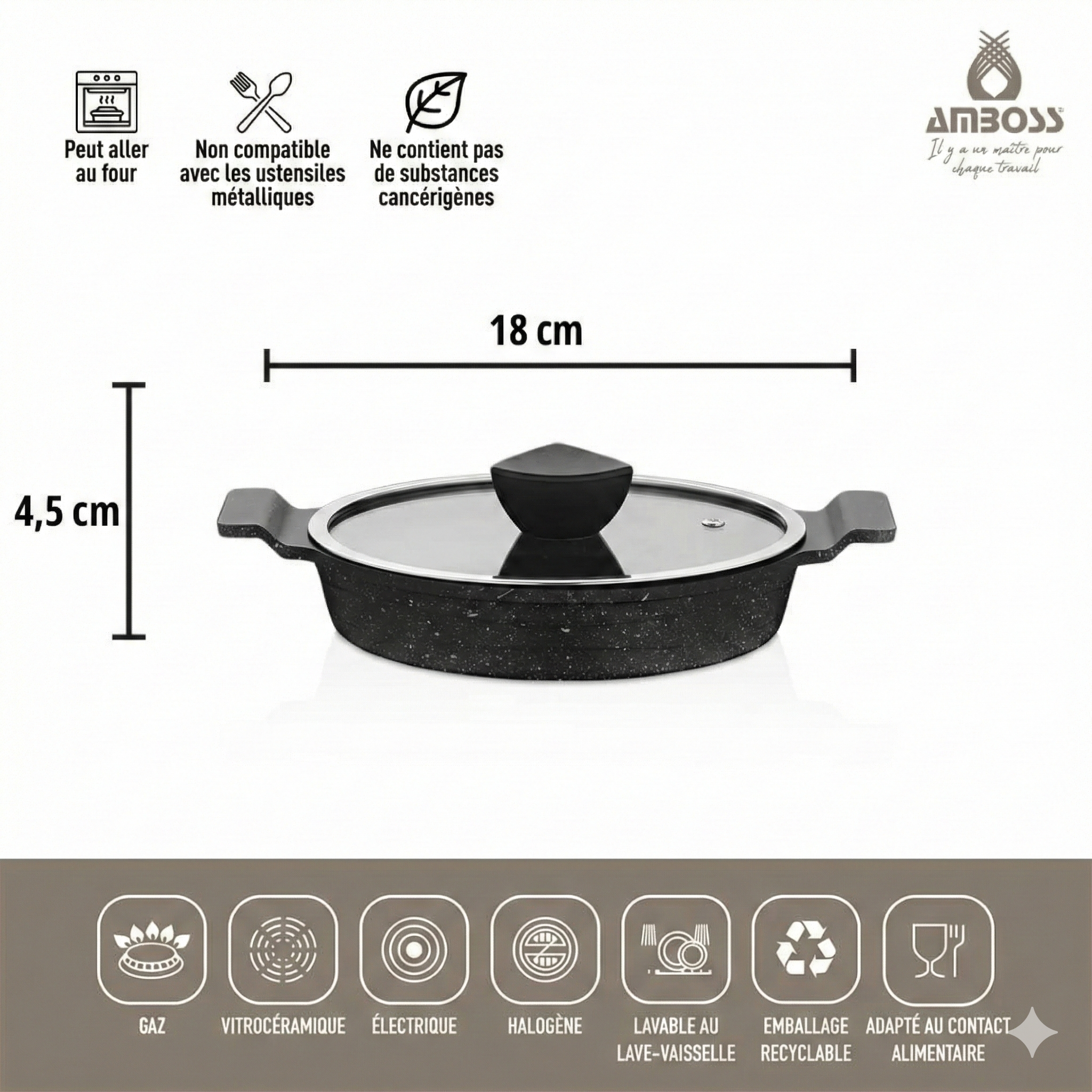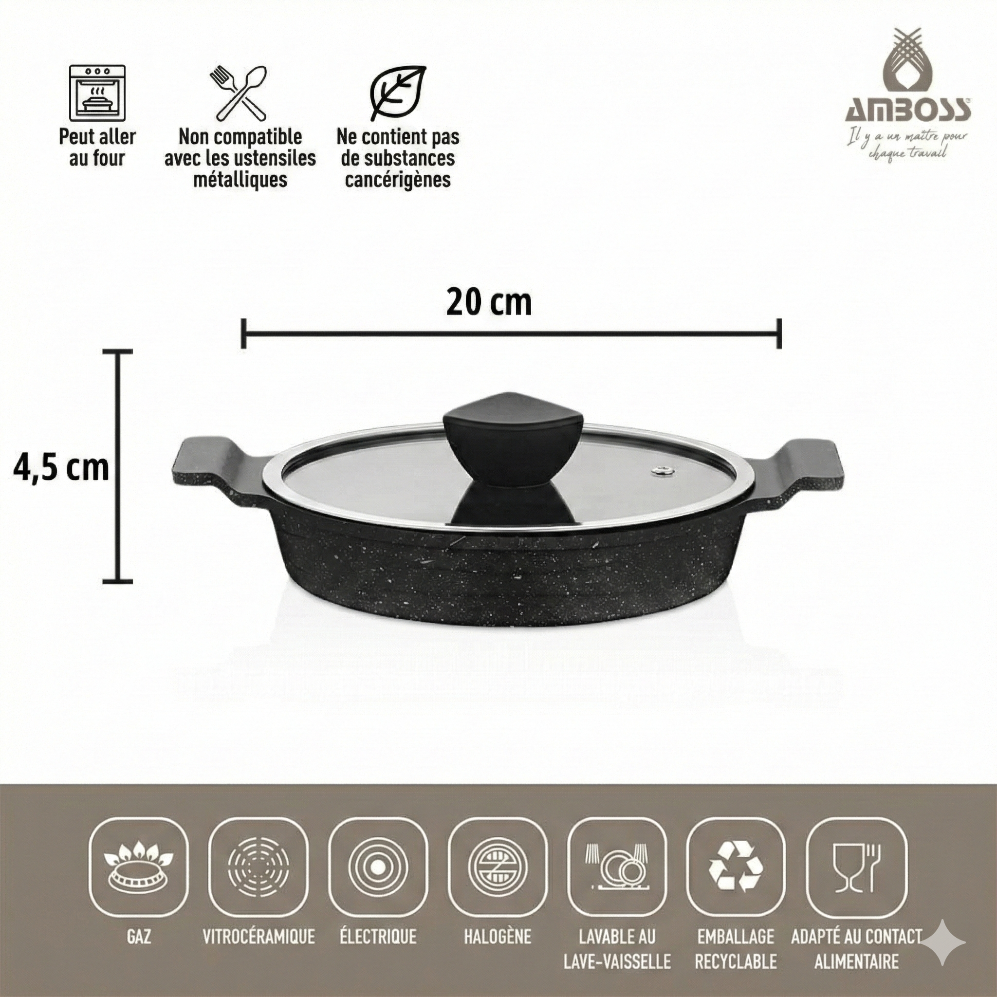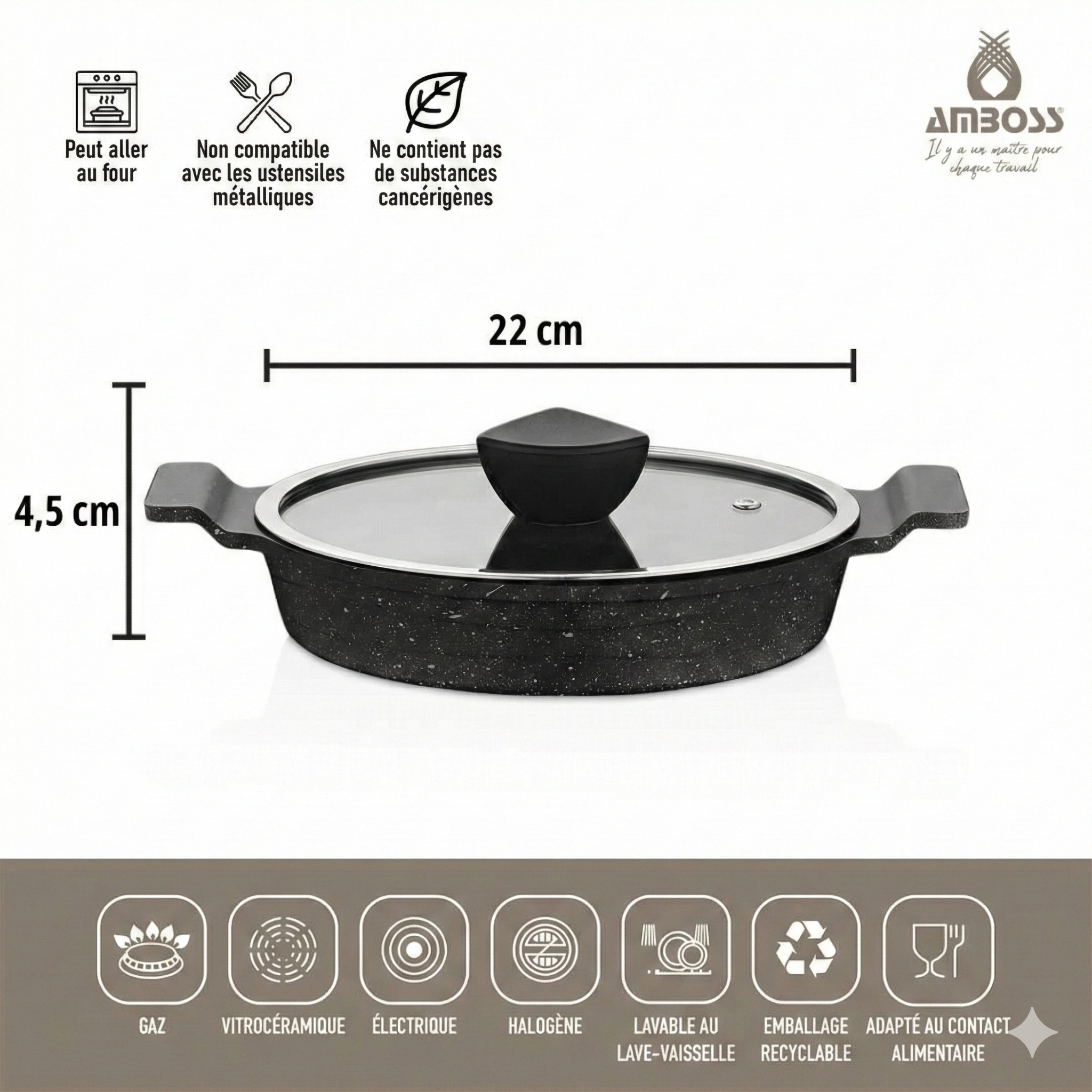 Couvercle en verre : Il vous permet de contrôler la cuisson et de conserver la chaleur, pour une cuisson plus rapide.