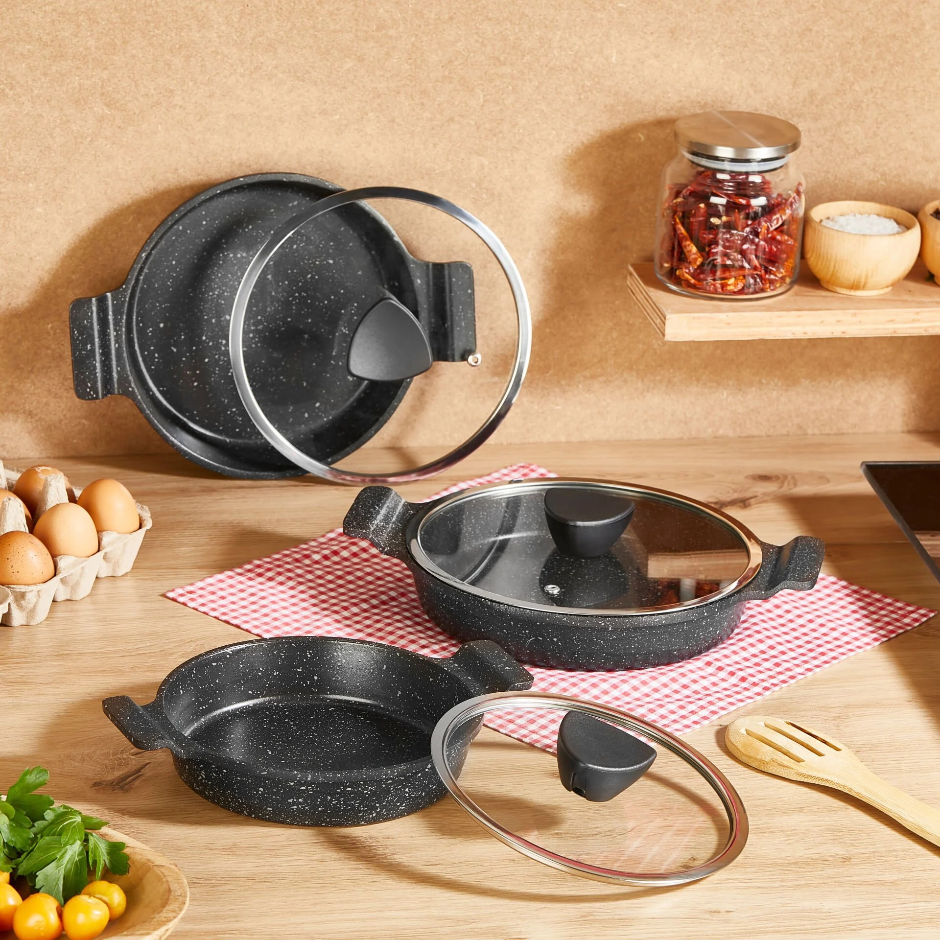 Pratique : Les couvercles en verre vous permettent de surveiller la cuisson et se nettoient facilement au lave-vaisselle.