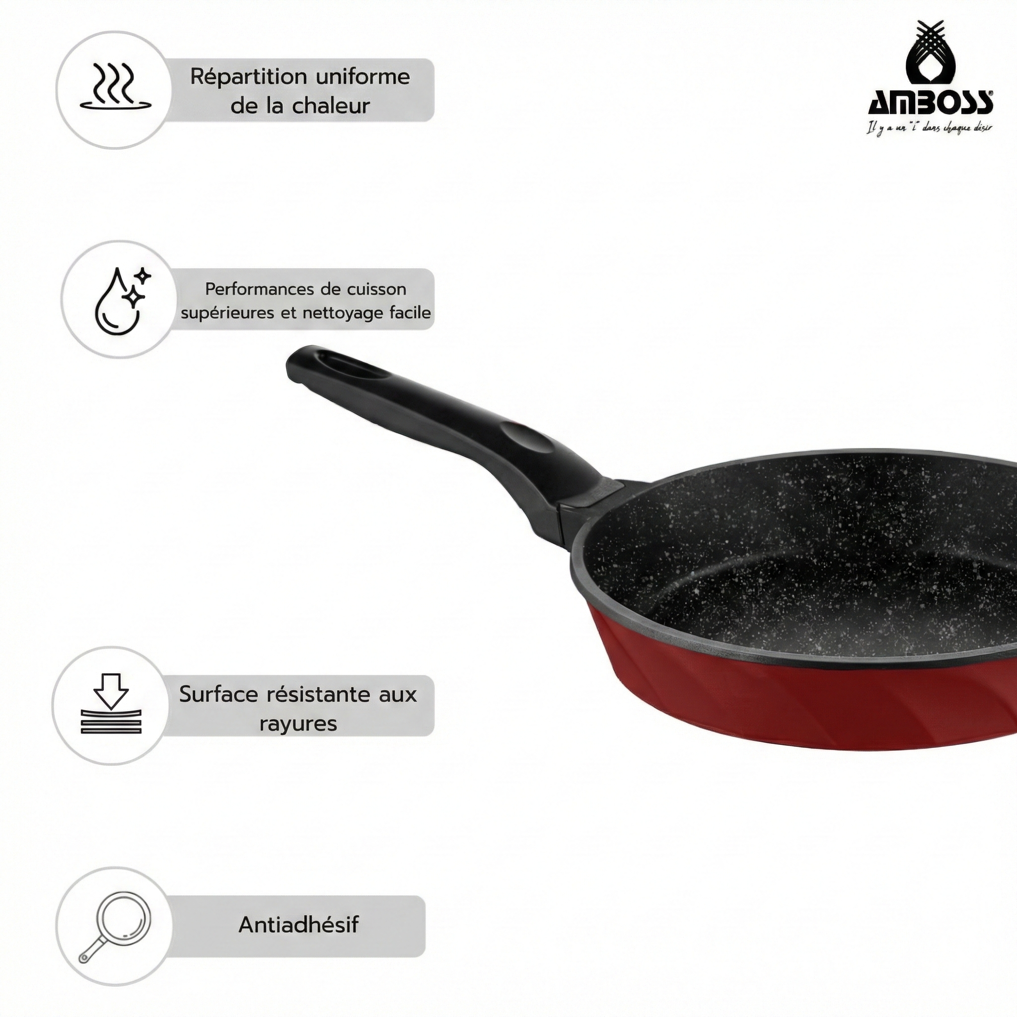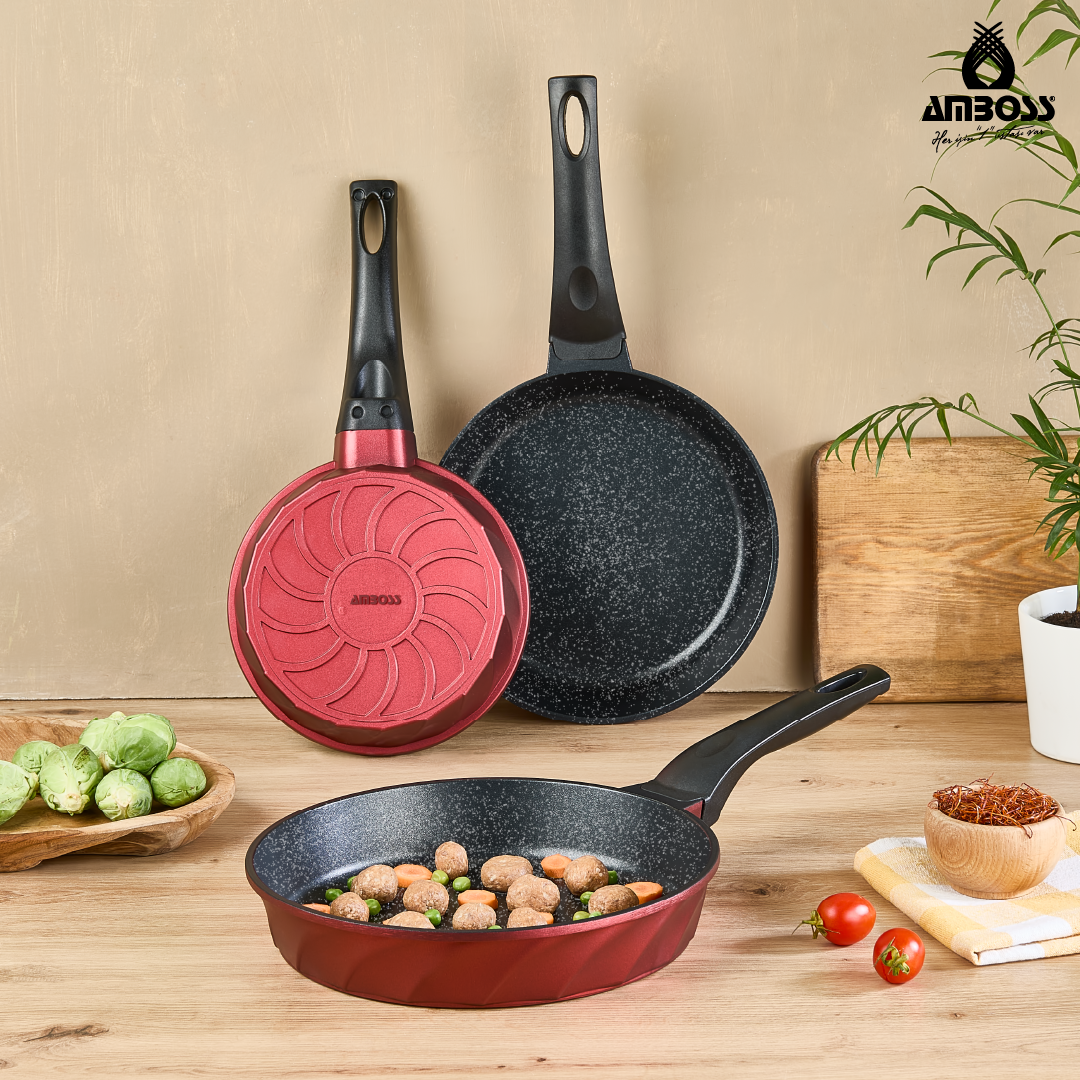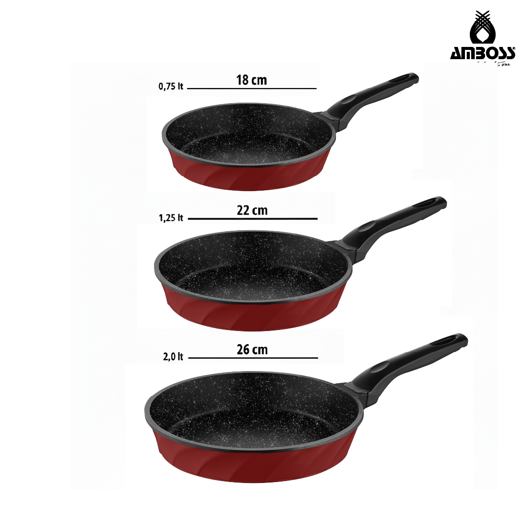 Ensemble de 3 poêles en fonte Amboss Vento – Rouge : Une touche professionnelle dans votre cuisine