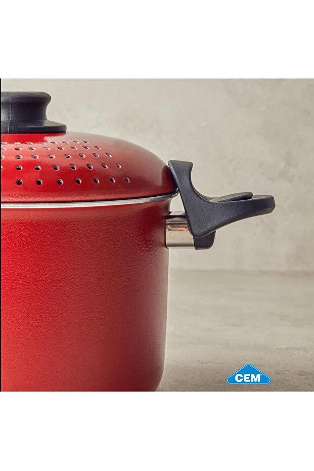 Marmite à Pâtes 20 cm avec Couvercle Égoutteur – Rouge