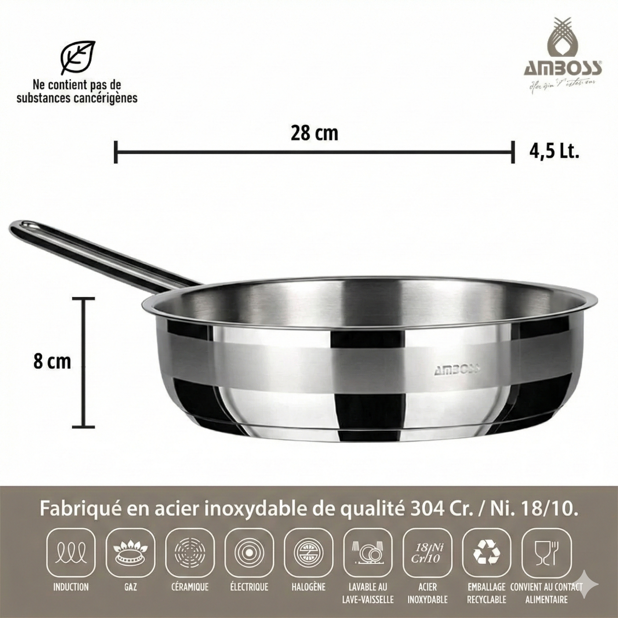 Poêle Amboss Sapphire en acier inoxydable (sans couvercle) 28 x 8 cm