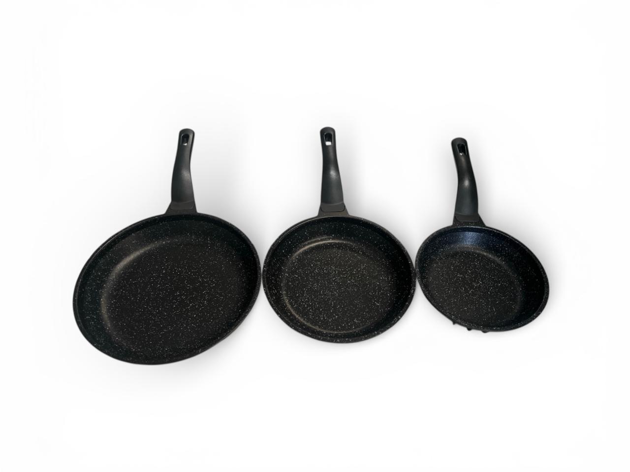 Set de 3 Poêles en Fonte d’Aluminium Revêtement Granit – Modèle Truva (20-24-28 cm)